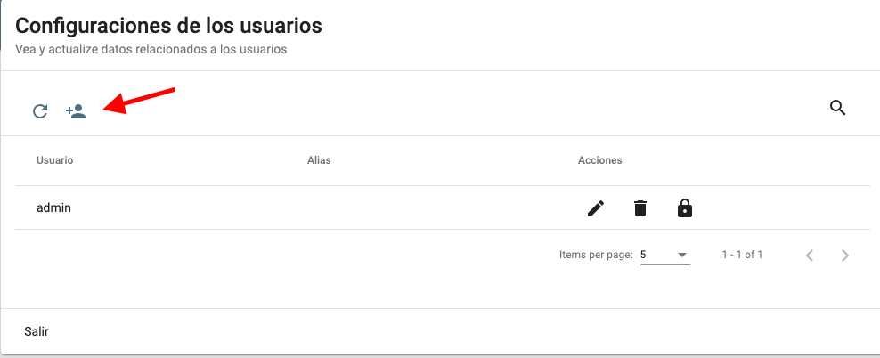 1. Abrir el panel de administración de la API y acceder el link configuraciones de usuarios.