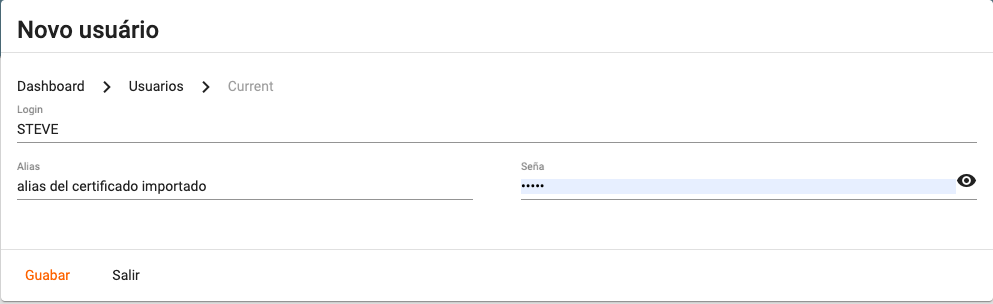 - Alias con el mismo alias del certificado que ese usuario puede firmar considerando los espacios y caracteres especiales si existieren.
