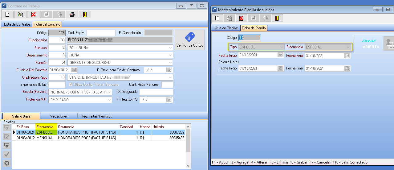1- Configurar el contrato de trabajo con ocurrencia Tipo ESPECIAL