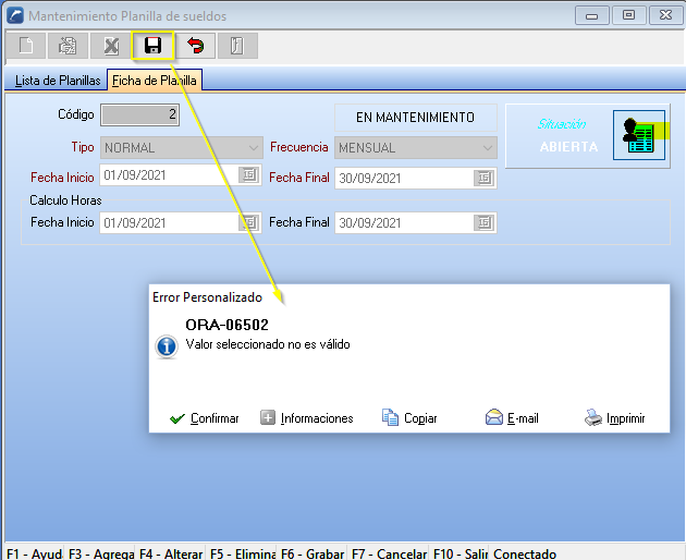ORA-06502 VALOR SELECCIONADO NO ES VÁLIDO -- Al querer cerrar Planilla