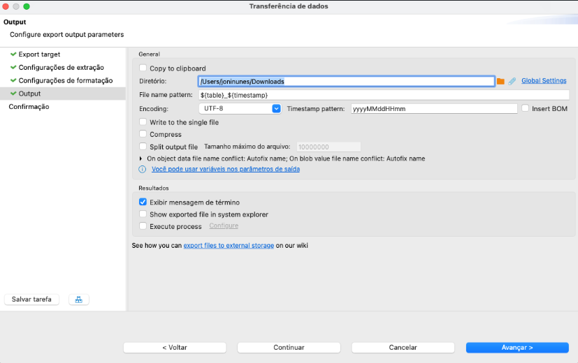 10. Los archivos con los datos estarán disponibles en la carpeta configurada en el item c del paso 7;