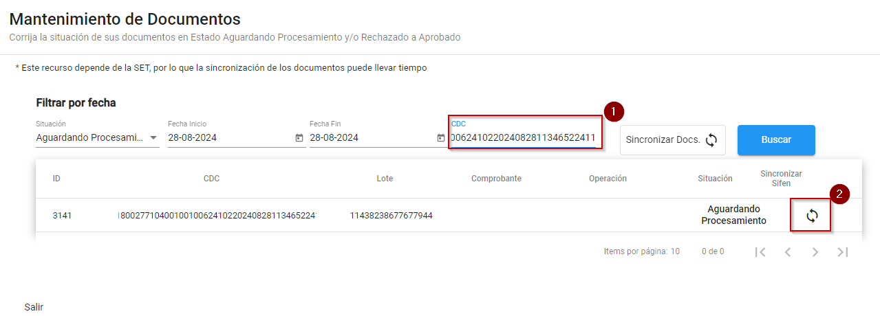 En ocasiones esporádicas, algunos documentos electrónicos aparecen con el estatus de 'aguardando procesamiento' o 'rechazado', y no se actualiza su status en Factura X, aunque ya hayan sido aprobados en SIFEN.