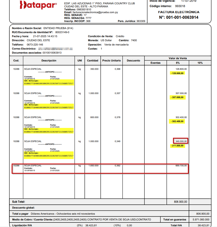 Para extornar el saldo disponible se debe considerar que al avanzar trae todos los precios utilizados en la totalizadora, donde deben de eliminar los que se consumieron en la baja del anticipo y luego se procede a aplicar el extorno por los precios que tienen saldo según la factura.